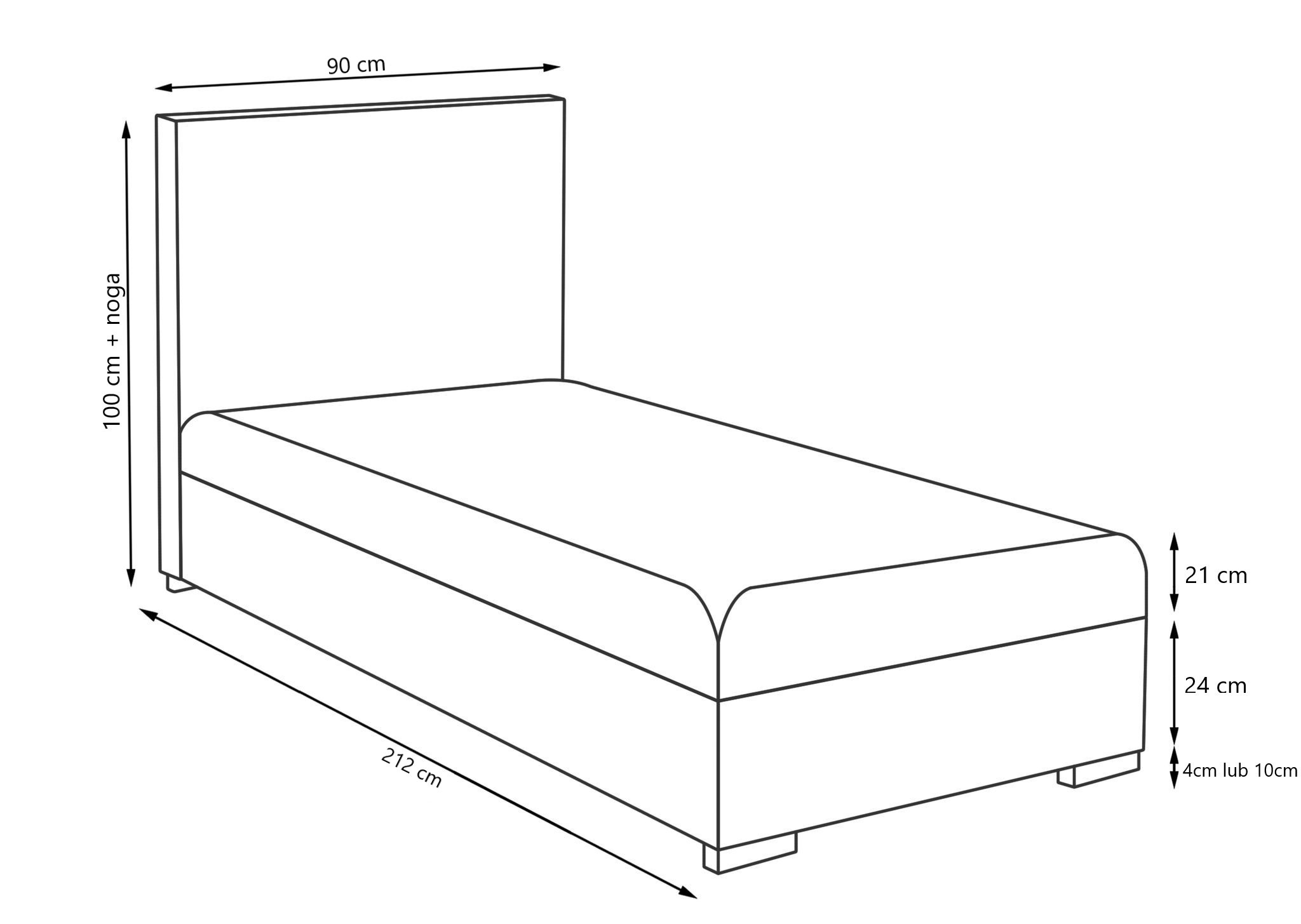 - Wysokość zagłowia 100cm (+nóżka 4cm lub 10cm)