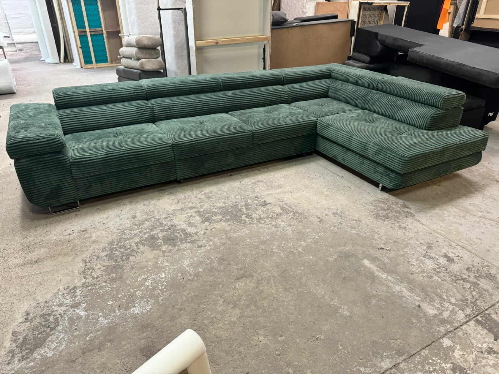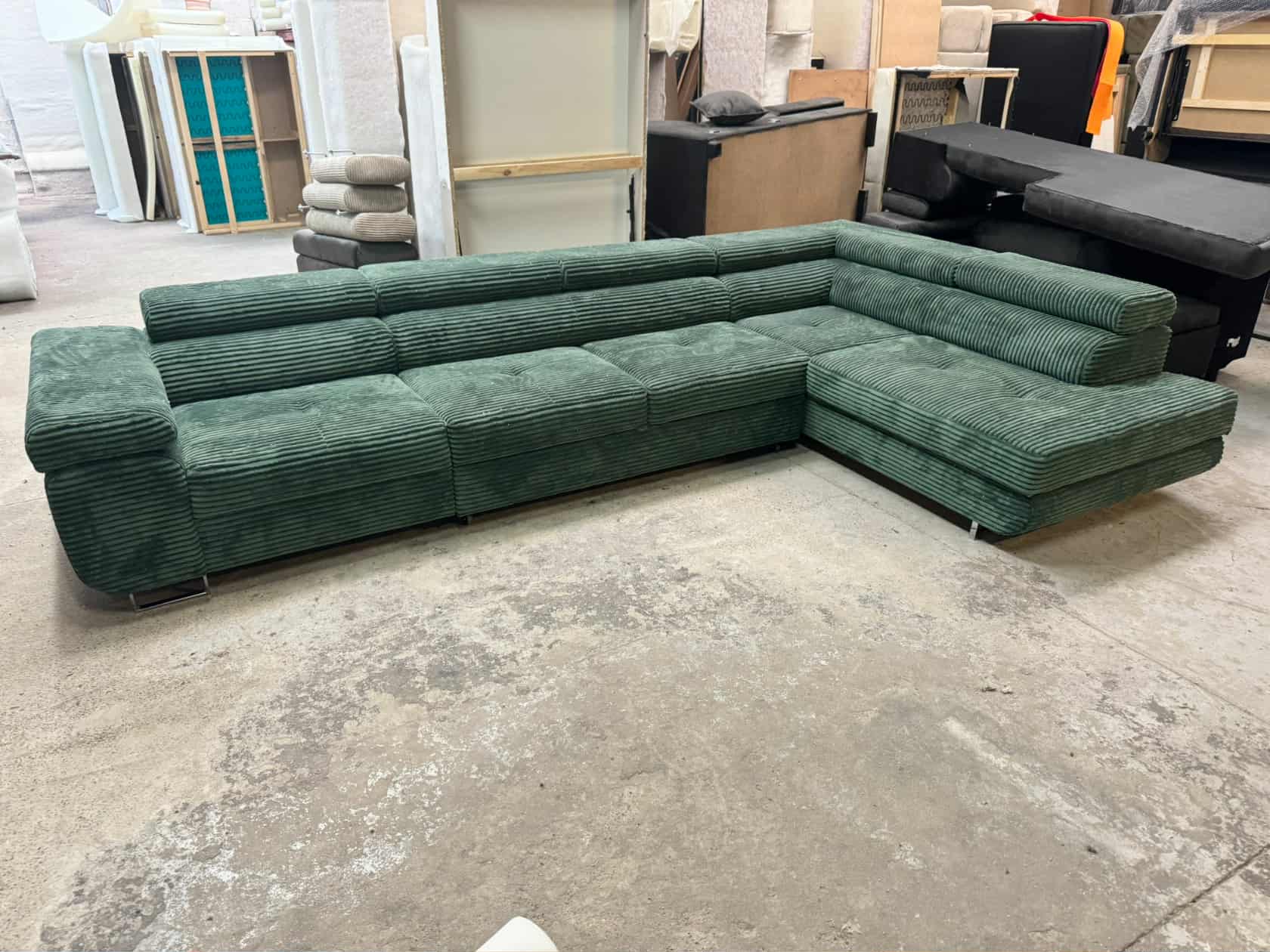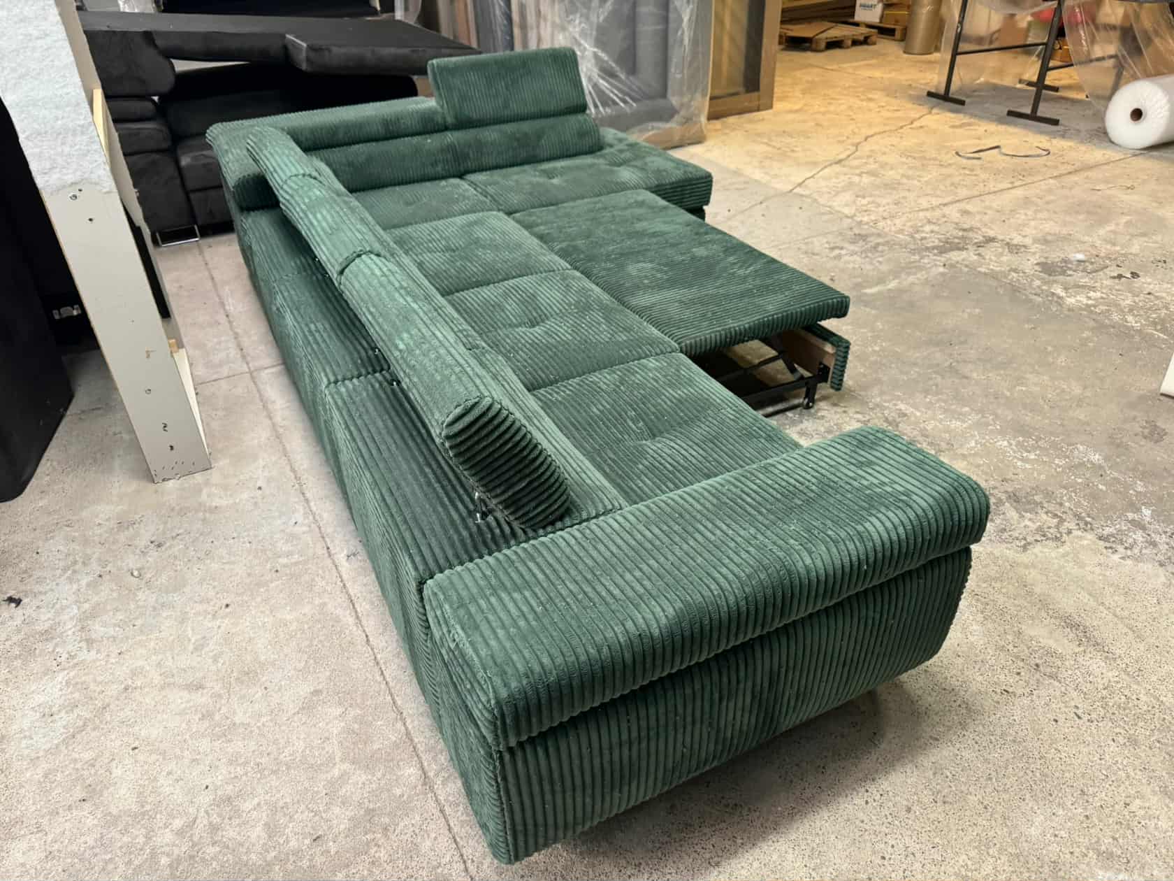 Narożnik Neapol L MAXI – !!! Promocja !!! – TKANINA: TOP SZTRUKS 39 ( Butelkowa Zieleń ) – Funkcja spania ,pojemnik na pościel ,regulowane zagłówki