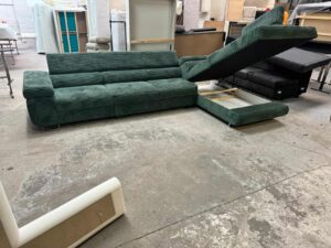 Narożnik Neapol L MAXI – !!! Promocja !!! – TKANINA: TOP SZTRUKS 39 ( Butelkowa Zieleń ) – Funkcja spania ,pojemnik na pościel ,regulowane zagłówki