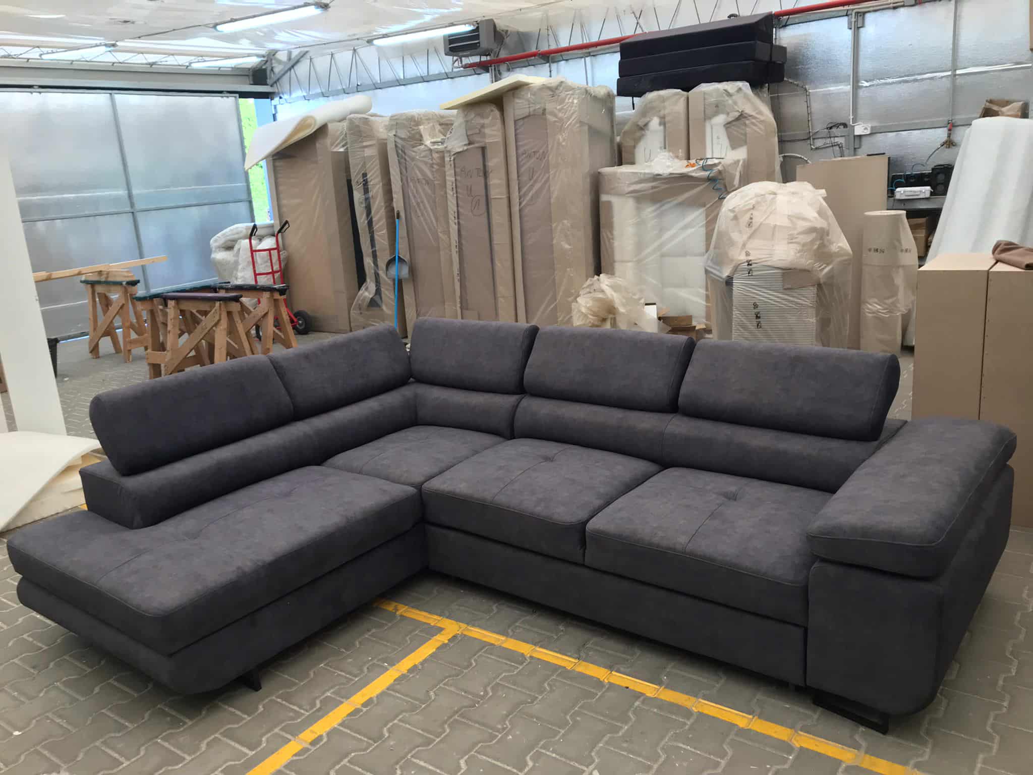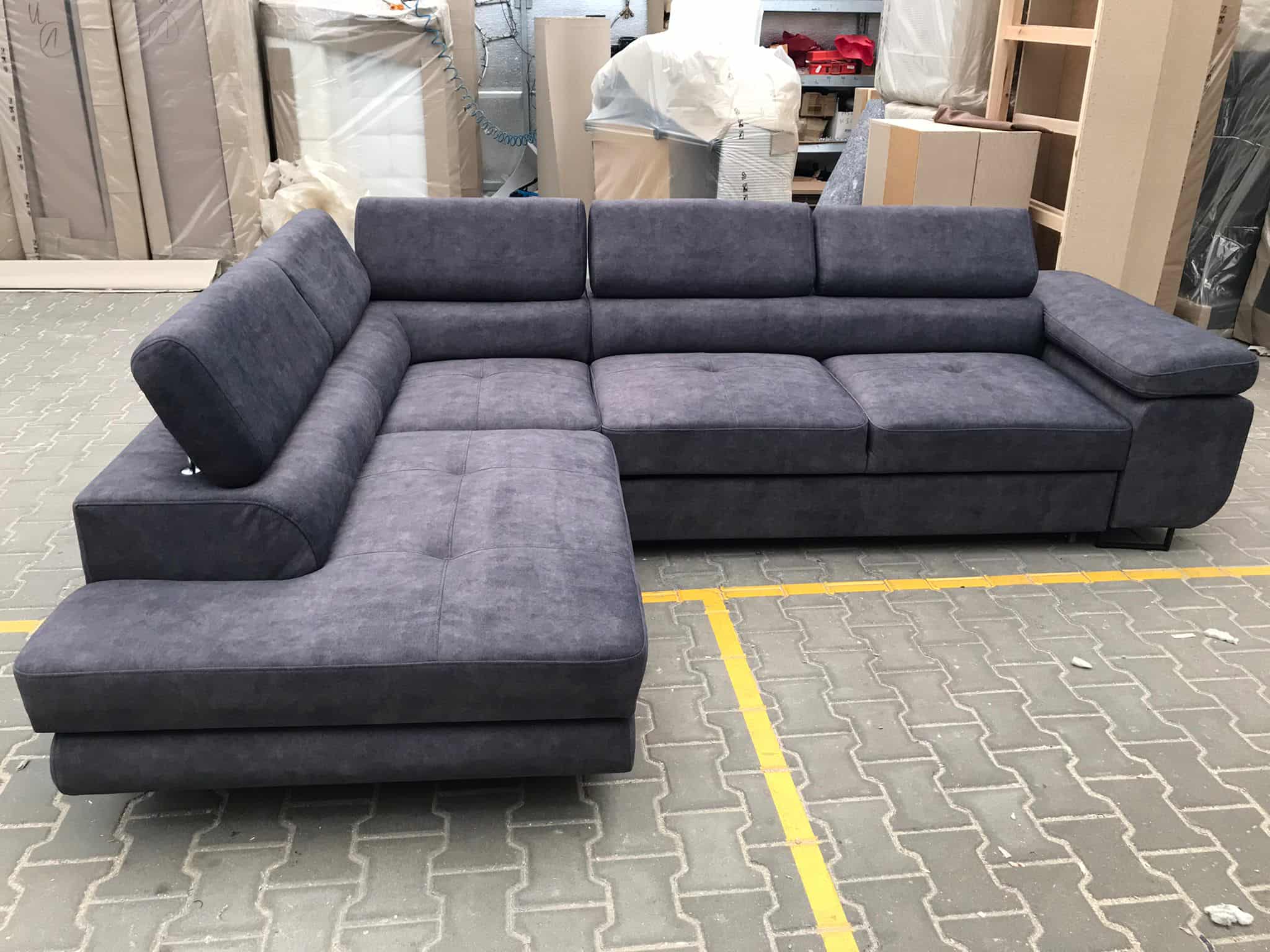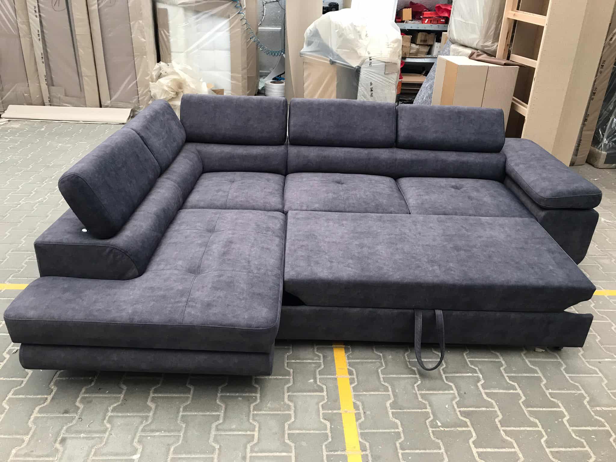 Narożnik Neapol – !!! Promocja !!! – TKANINA: CHILLE ME 01 ( GRAFIT ) – Funkcja spania ,pojemnik na pościel ,regulowane zagłówki