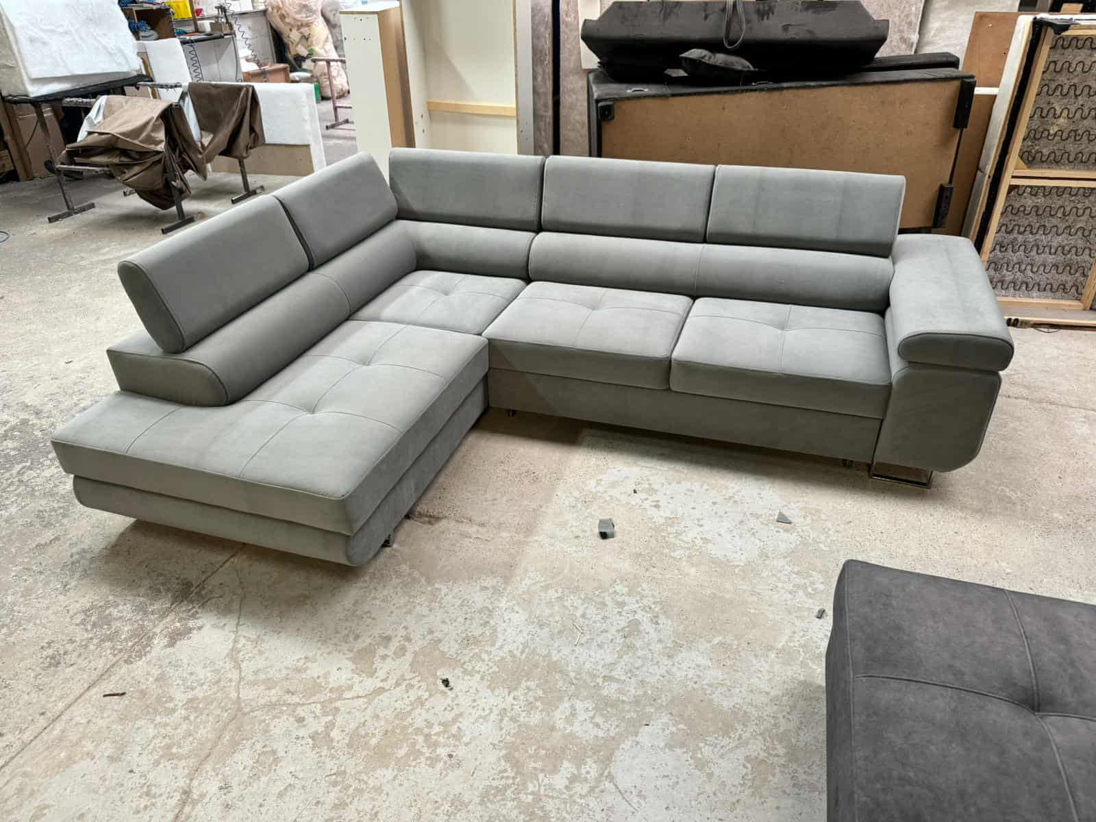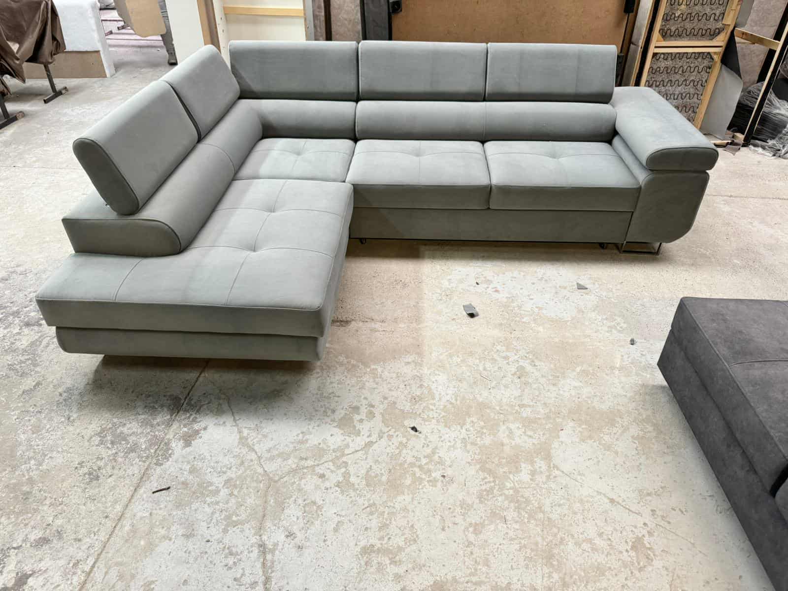 Narożnik Neapol – !!! Promocja !!! – TKANINA: MATT VELVET 85 ( Szary ) – Funkcja spania ,pojemnik na pościel ,regulowane zagłówki