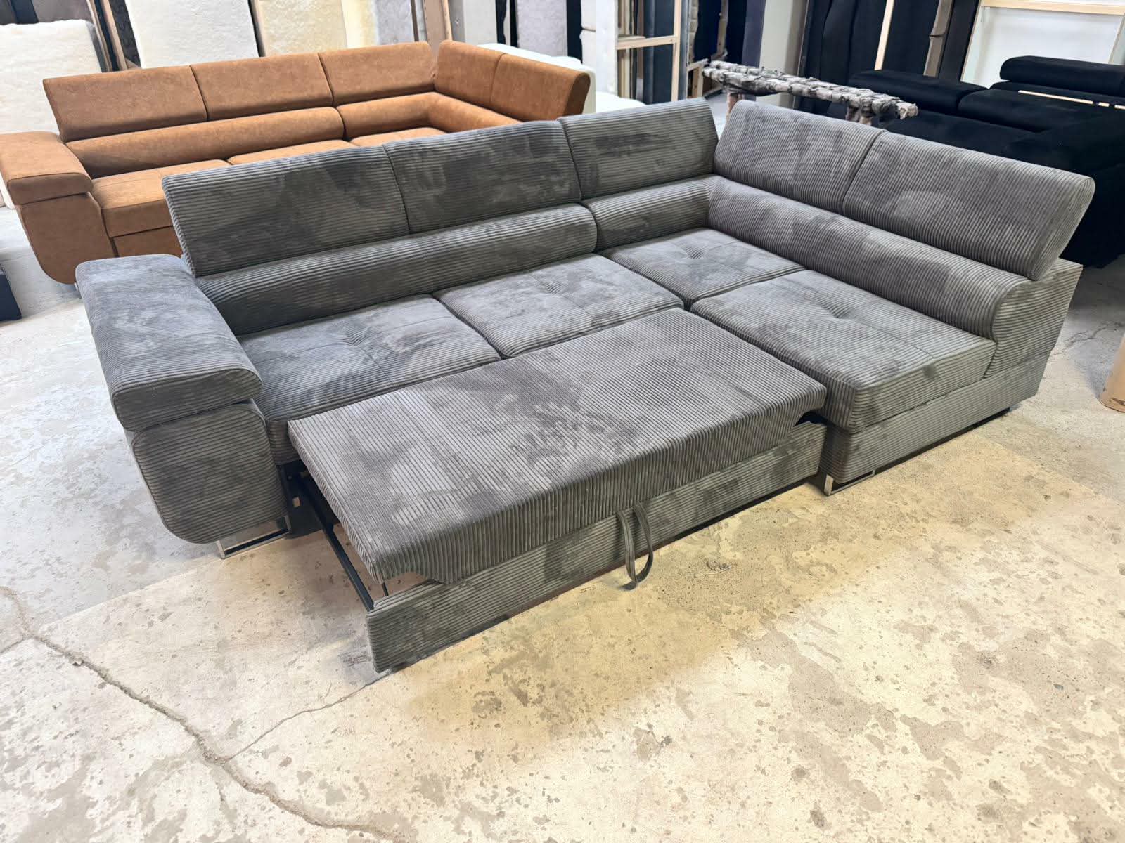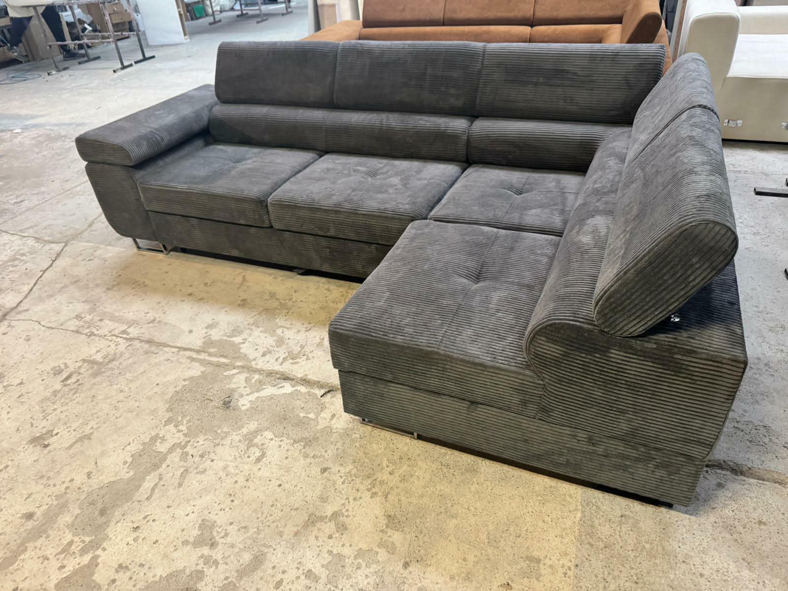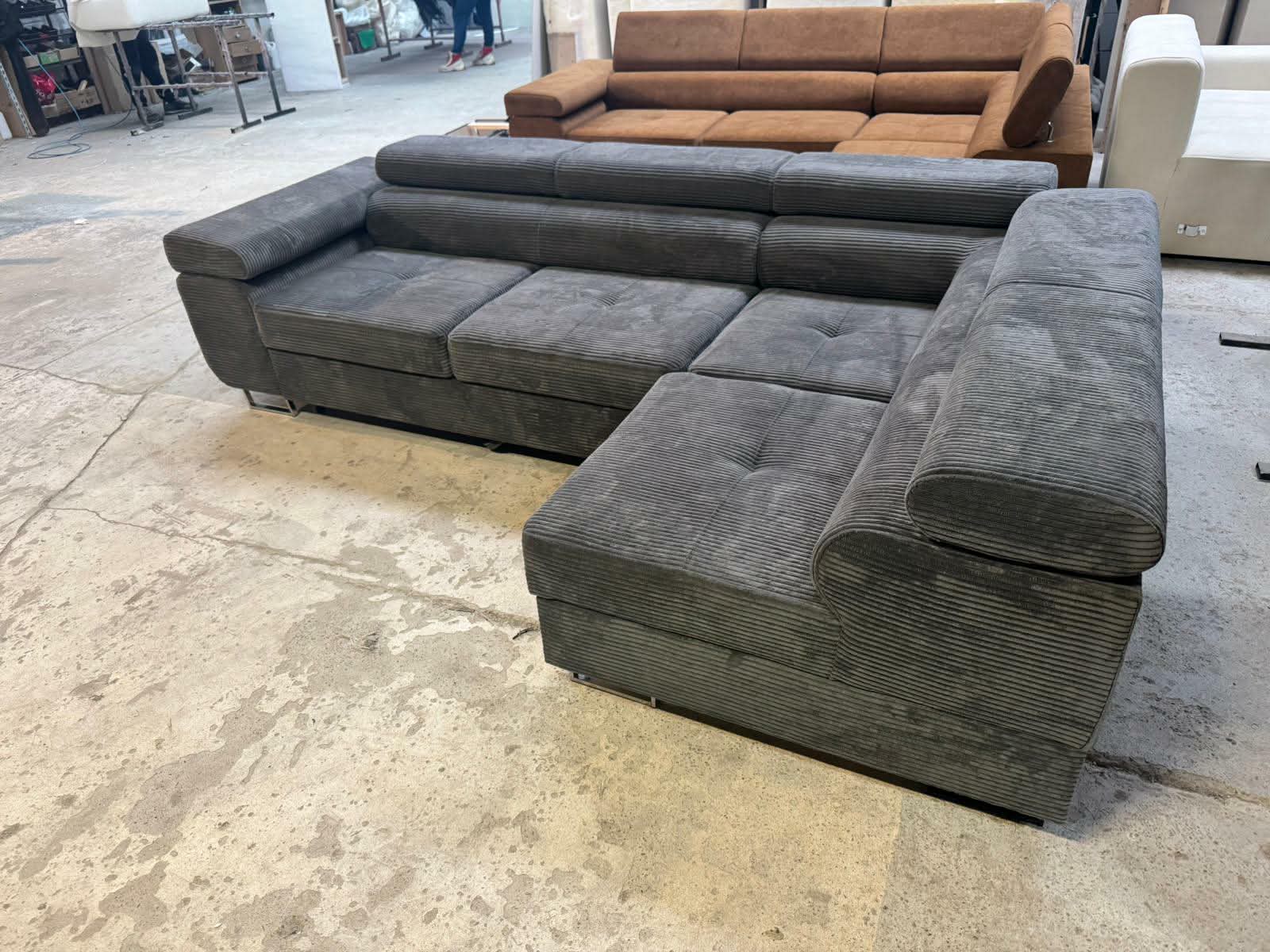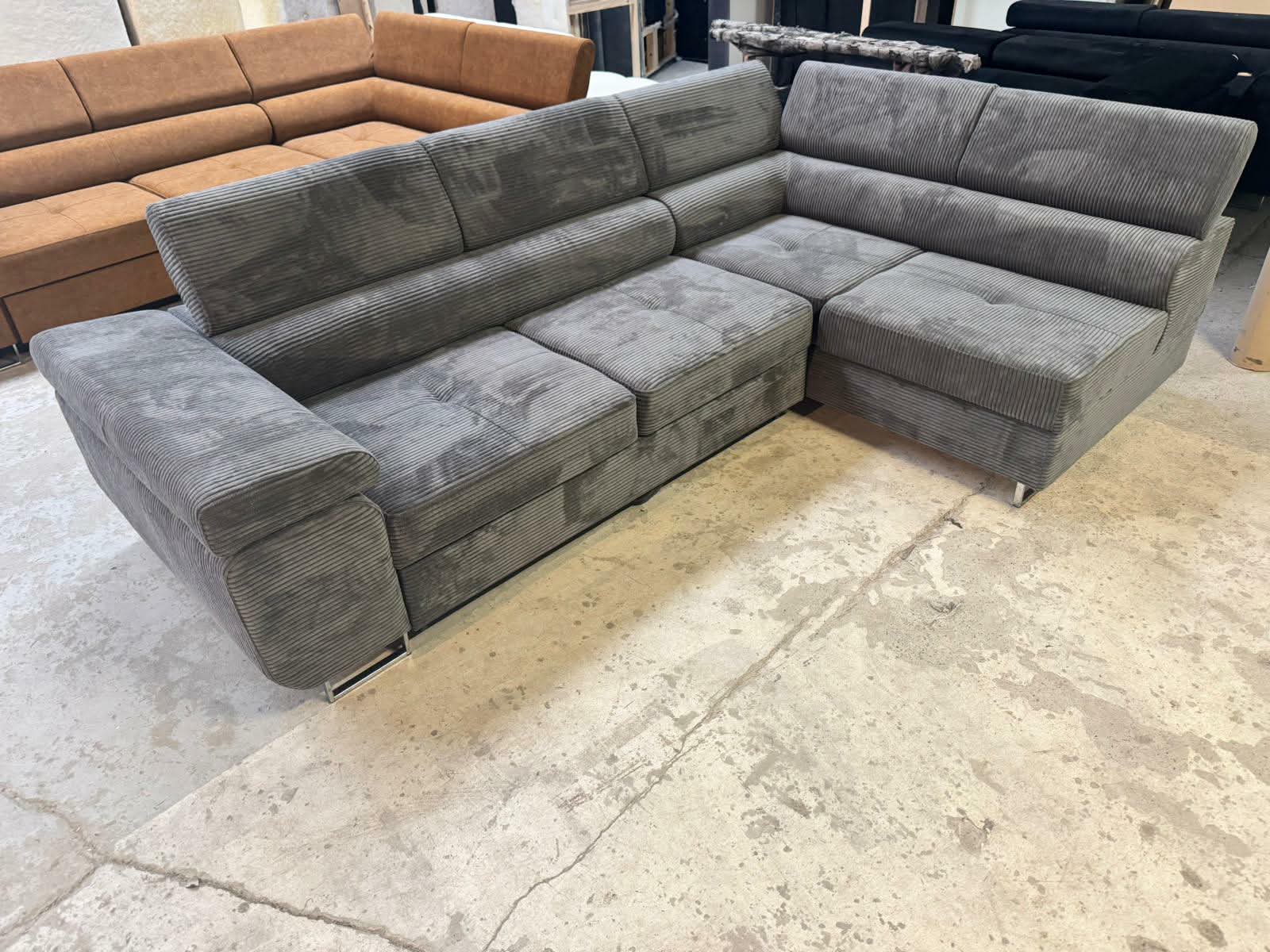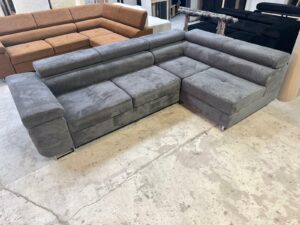 Narożnik Neapol VIGO – !!! Promocja !!! – TKANINA: POSSO 22 (ciemny szary) – Funkcja spania ,pojemnik na pościel ,regulowane zagłówki