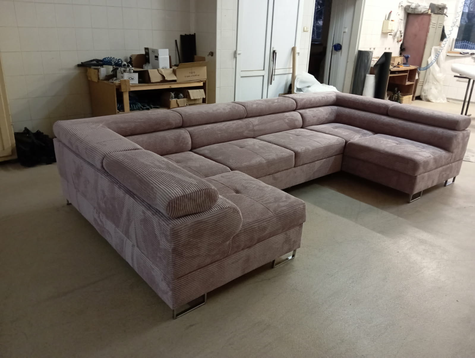 NEAPOL U MINI to mebel który wyróżnia się dużą powierzchnią siedziska, jak i spania. Sporą pojemność przechowywania zapewniają dwa pojemniki na pościel umieszczone w obu otomanach. Ciekawy wygląd mebla zapewniają piki oraz przeszycia na siedziskach, chromowane nóżki, czy wygodne, regulowane zagłówki. Wytrzymała stabilna konstrukcja mebla oraz wygodne wypełnienie siedziska wykonane ze sprężyny falistej i elastycznej pianki T30.