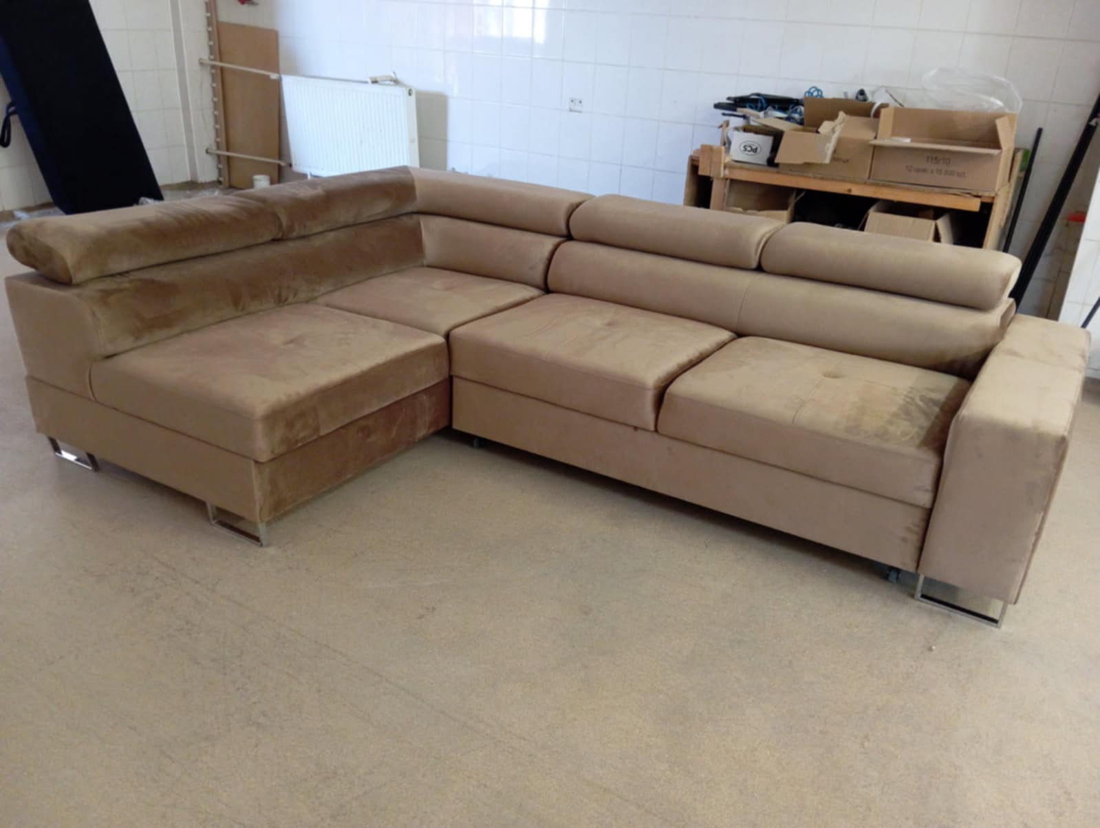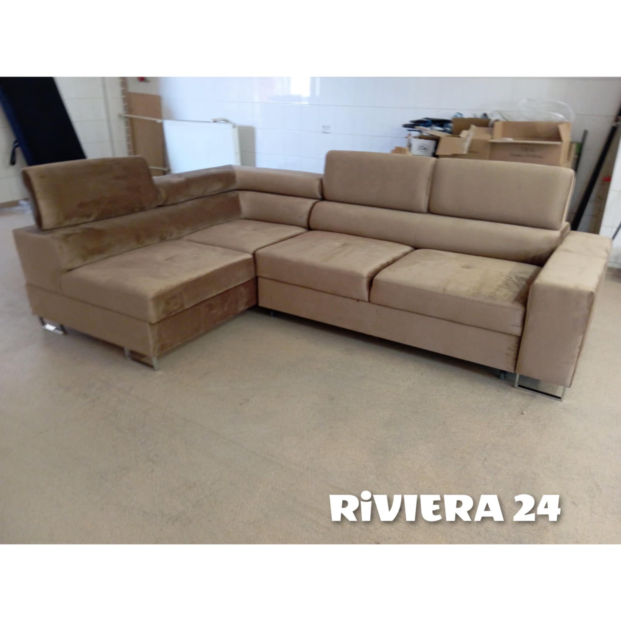 Narożnik Neapol VIGO – !!! Promocja !!! – TKANINA: RIVIERA 24 ( Beż ) – Funkcja spania ,pojemnik na pościel ,regulowane zagłówki