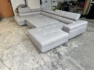 NEAPOL VEGAS TWIN U to mebel który wyróżnia się dużą powierzchnią siedziska, jak i spania. Sporą pojemność przechowywania zapewniają dwa pojemniki na pościel umieszczone w obu otomanach. Ciekawy wygląd mebla zapewniają piki oraz przeszycia na siedziskach, chromowane nóżki, czy wygodne, regulowane zagłówki. Wytrzymała stabilna konstrukcja mebla oraz wygodne wypełnienie siedziska wykonane ze sprężyny falistej i elastycznej pianki T30.