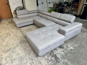 NEAPOL VEGAS TWIN U to mebel który wyróżnia się dużą powierzchnią siedziska, jak i spania. Sporą pojemność przechowywania zapewniają dwa pojemniki na pościel umieszczone w obu otomanach. Ciekawy wygląd mebla zapewniają piki oraz przeszycia na siedziskach, chromowane nóżki, czy wygodne, regulowane zagłówki. Wytrzymała stabilna konstrukcja mebla oraz wygodne wypełnienie siedziska wykonane ze sprężyny falistej i elastycznej pianki T30.