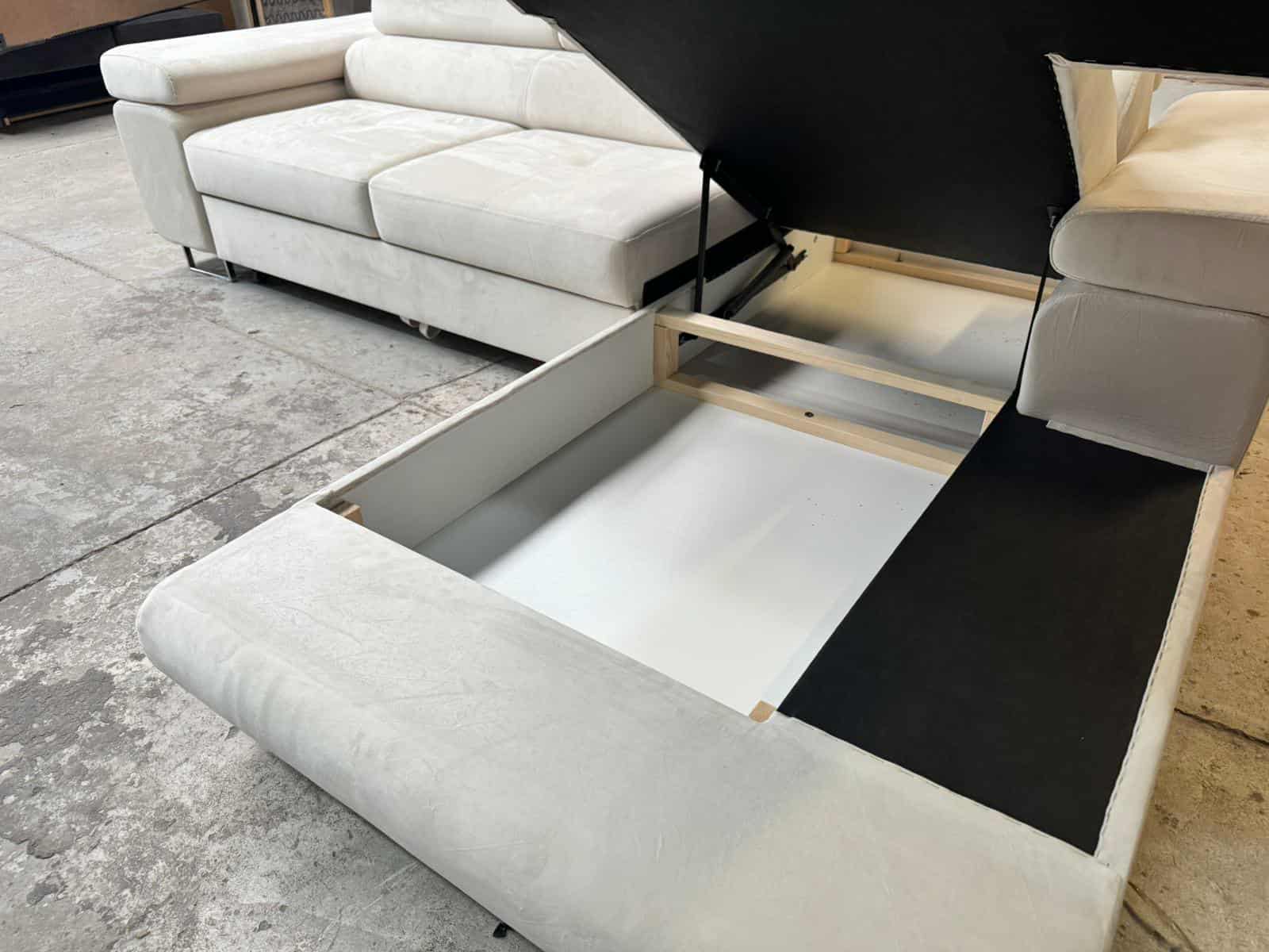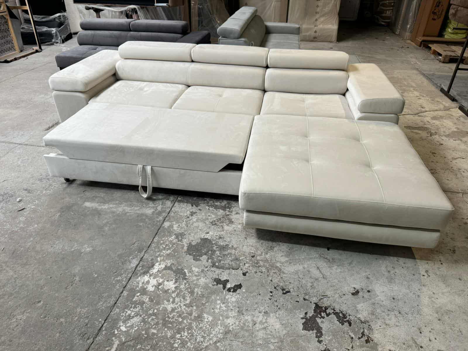 Narożnik VEGAS TWIN – Tkanina: MAGIC VELVET 2250 (Śmietankowy) – komfortowy , funkcja spania , pojemnik na pościel