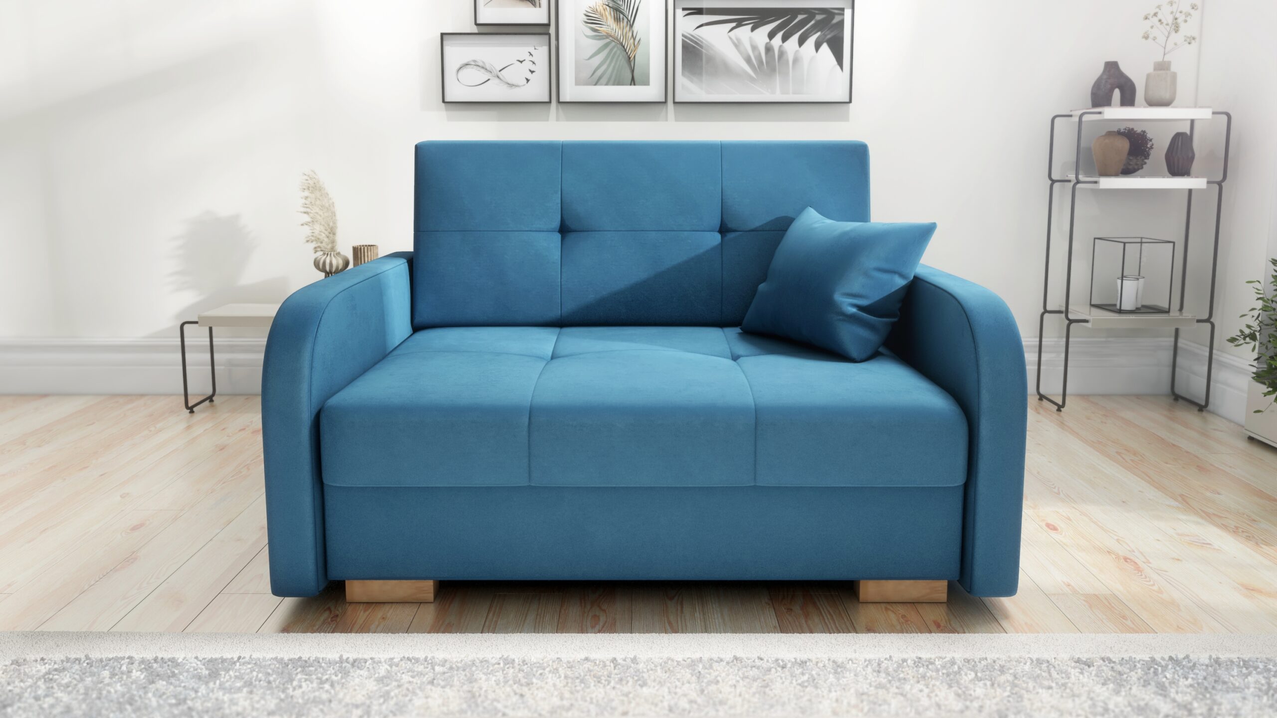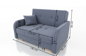 - Funkcja spania – sofa rozkładana za pomocą automatu dzięki czemu w kilka chwil rozkładamy ją do pełnowymiarowego łózka