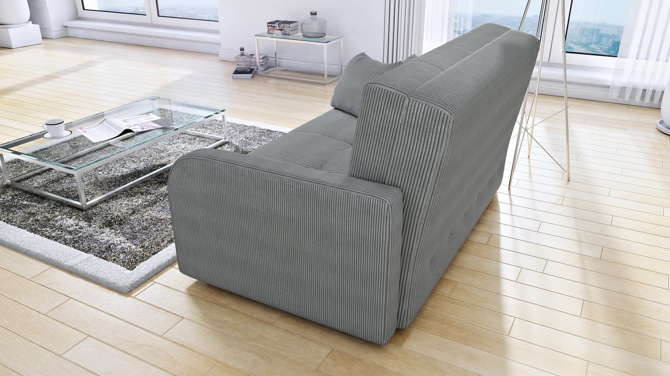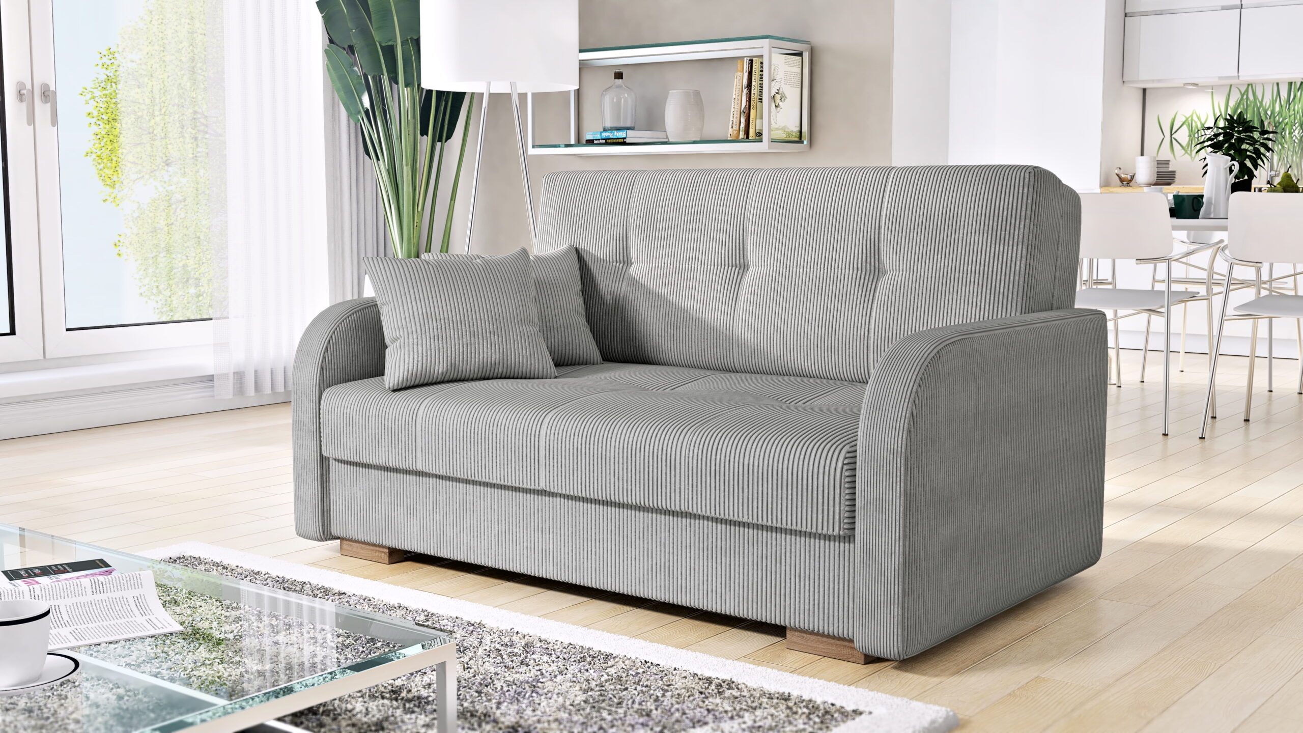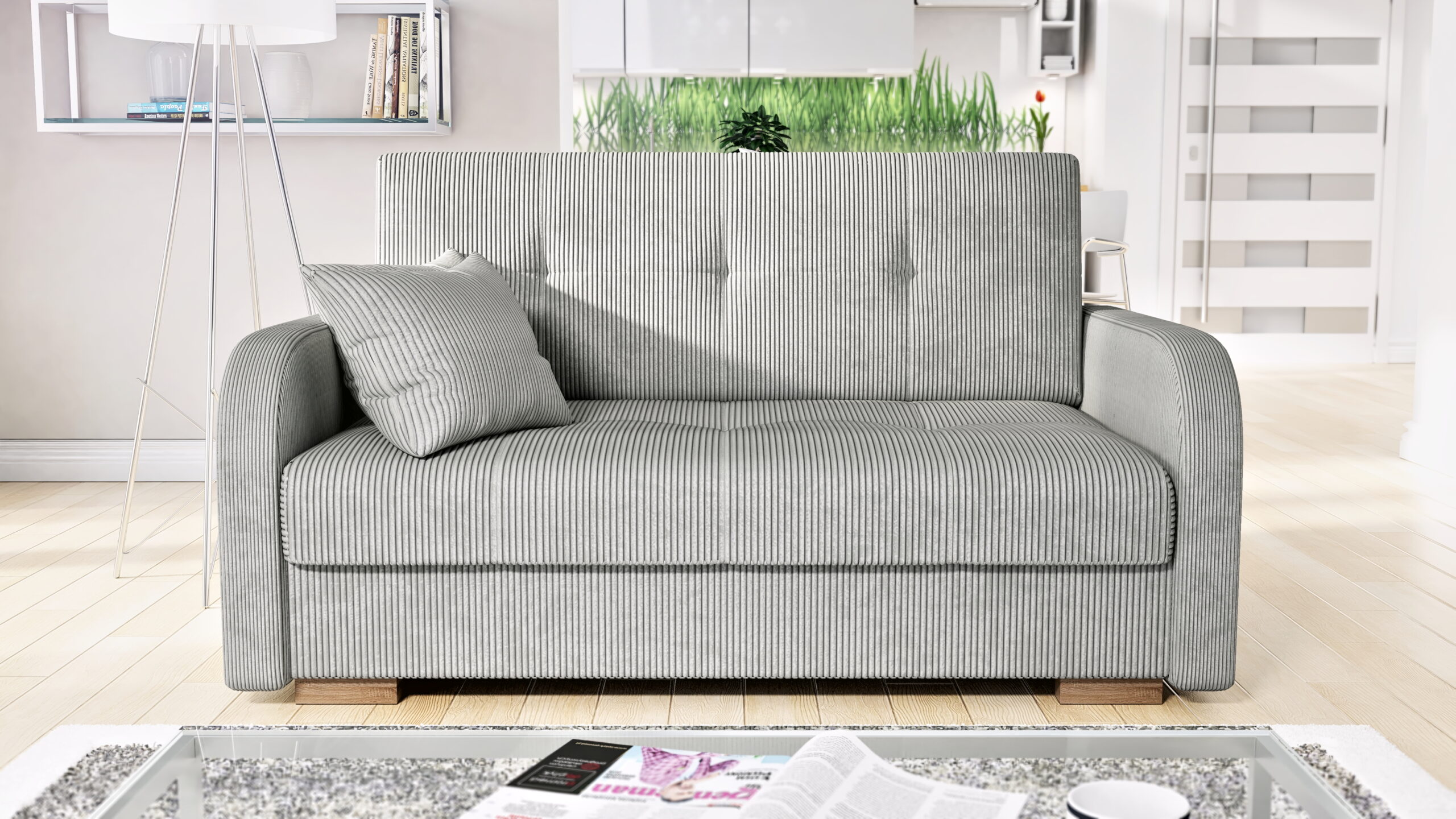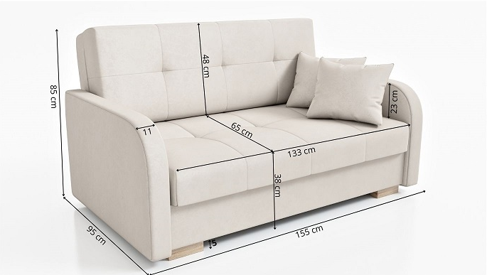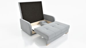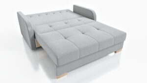 - Funkcja spania – sofa rozkładana za pomocą automatu dzięki czemu w kilka chwil rozkładamy ją do pełnowymiarowego łózka