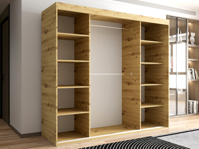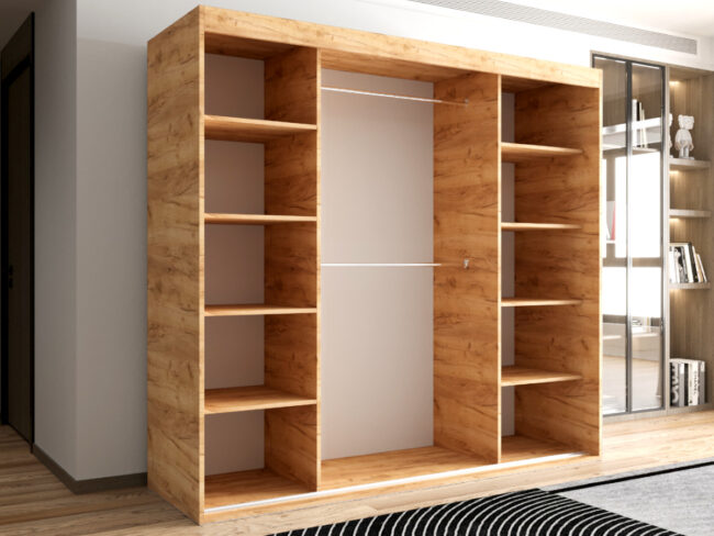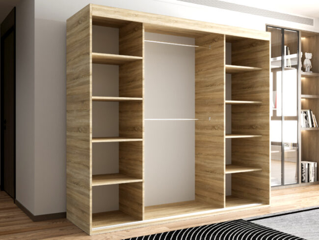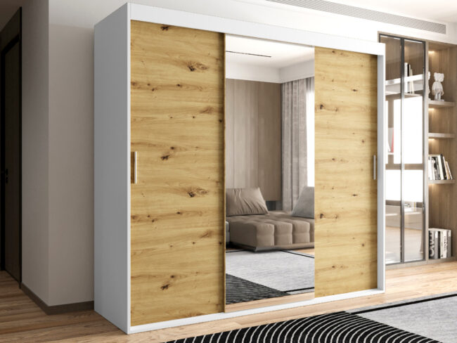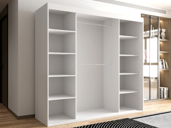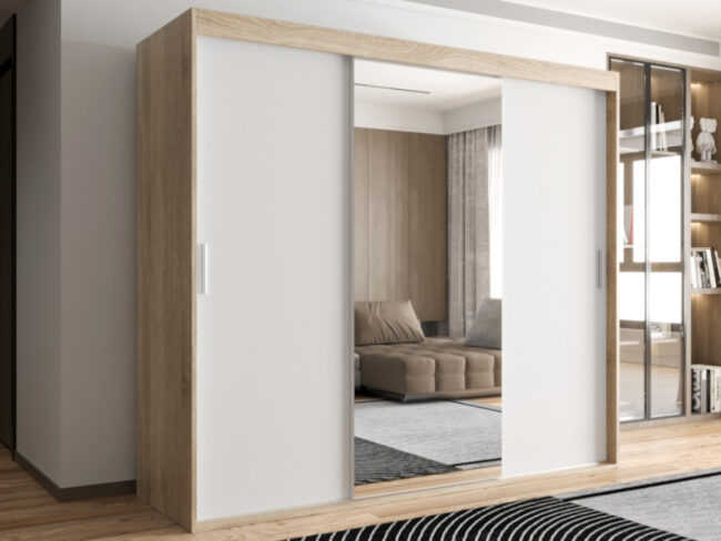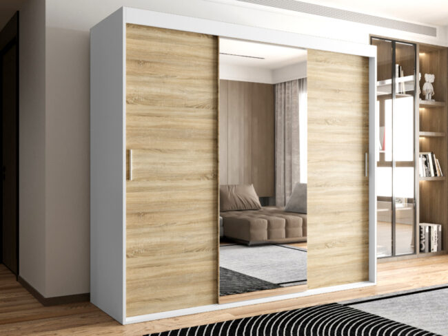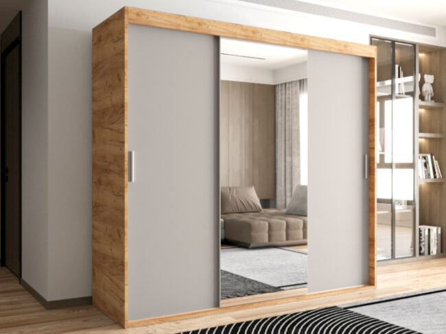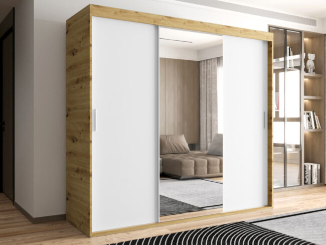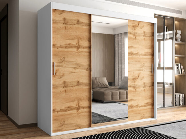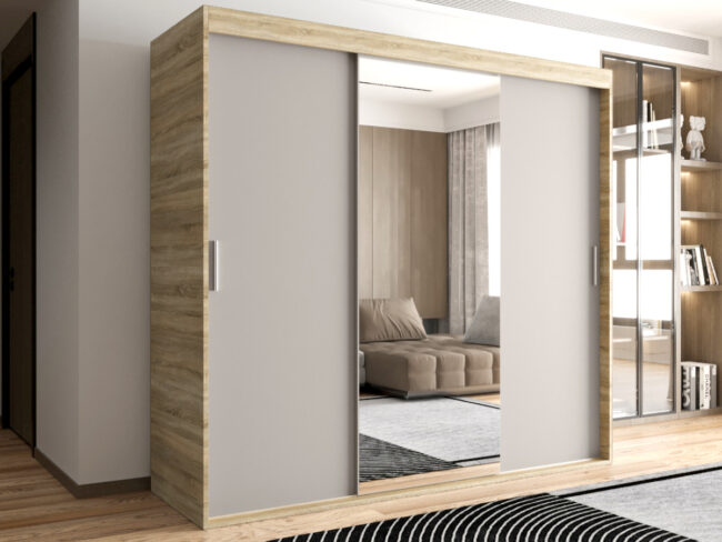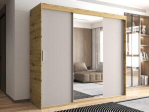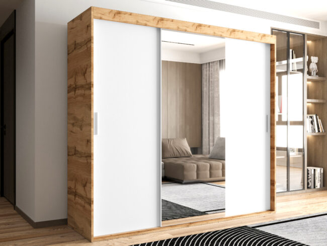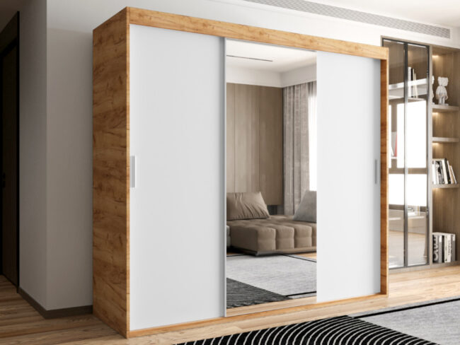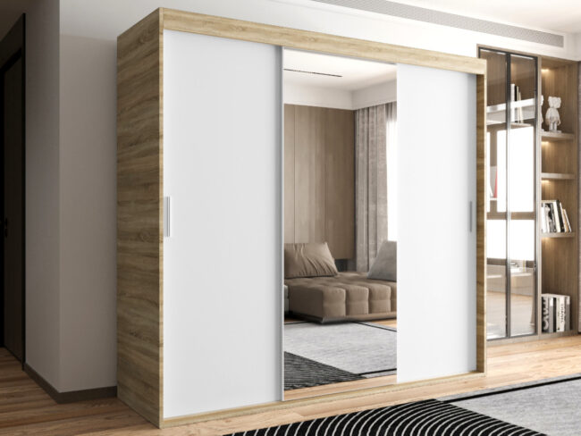 Szafa OTARIO – DOSTĘPNE OD RĘKI!- 3 Drzwiowa Z Lustrem Z Wyposażeniem Drążki Półki
