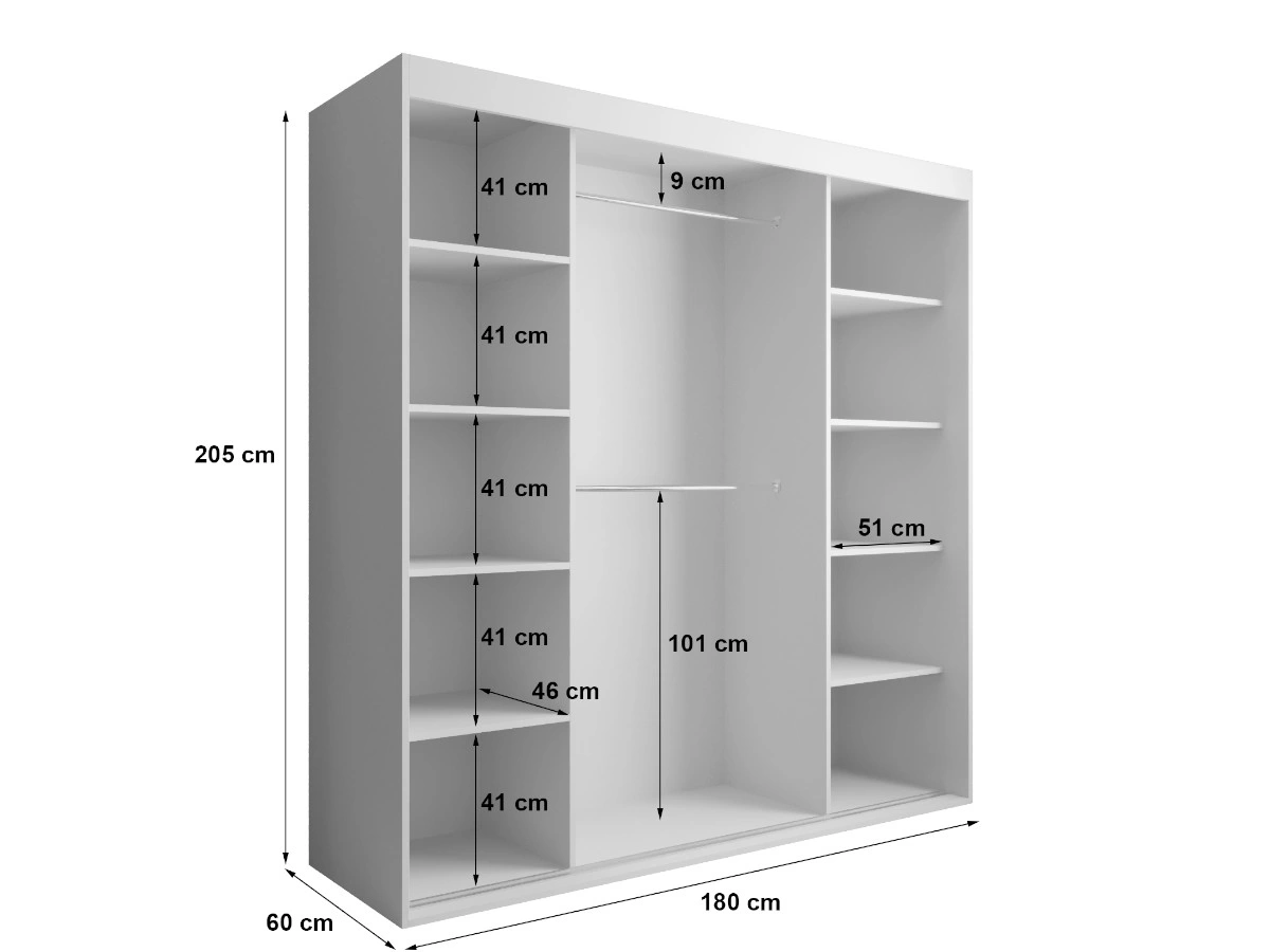 - Głębokość półek: 46 cm